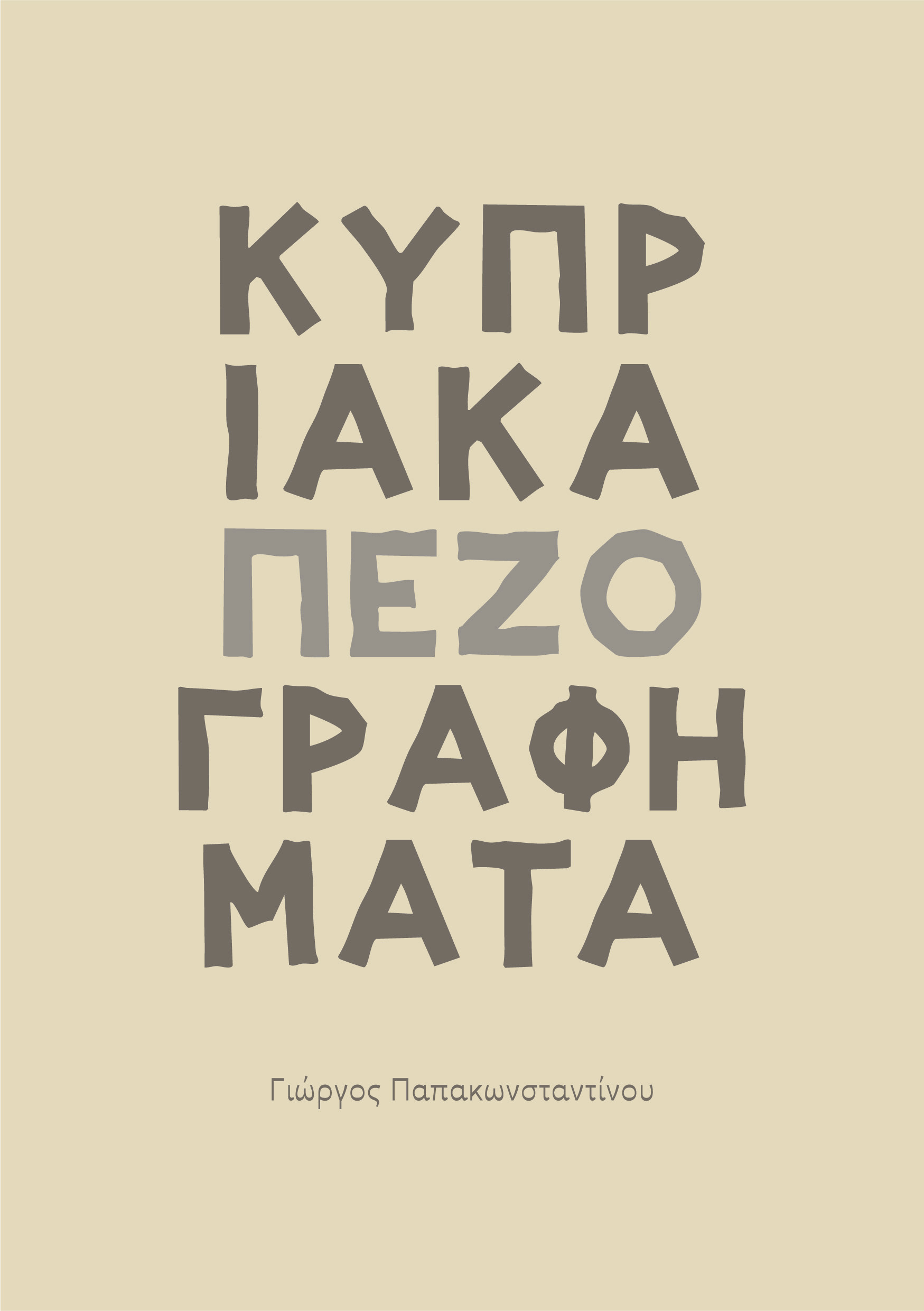 Kypriaka Pezografimata, the sixth book by Giorgos Papakonstantinou, reflects his steady commitment to Cypriot storytelling. For this edition, I created the cover and visual identity, including a custom typeface shaped by the earthy textures that echo the island’s ground - simple, grounded, and true to the spirit of his work.